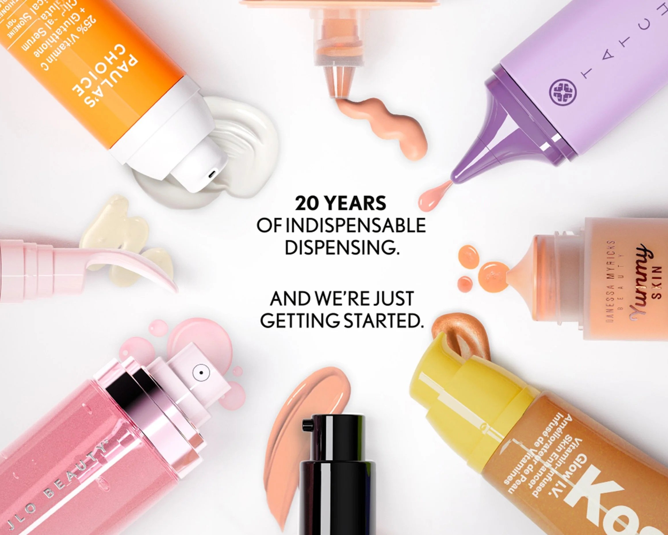 ADVERTISING & PROPS Showing our dispensing capabilities withour packaging for our 20th editorial Ad. Showing our packaging small in a clever way and showing the iconic 20th logo. Event in NYC to showcase packaging & formula. An ad to highlight our SPF Package in an eye-catching way for social, for National Sunscreen Day. Idea to create a large size of our iconic airless package to celebrate our 20 years and to have our customers at every event to sign to commemorate. View Gallery